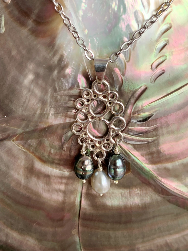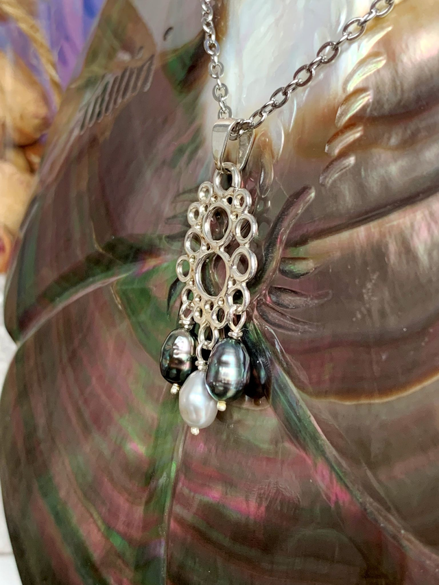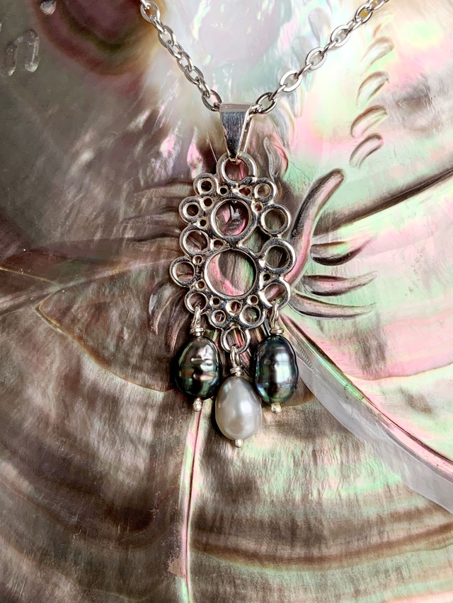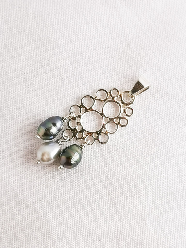 Ārea - Pendentif en argent 925 et véritables Keshis de Tahiti