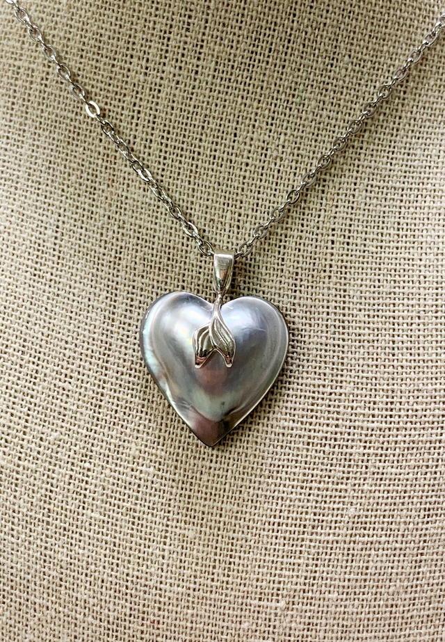 Un Mabé de tahiti en forme de coeur, sur une monture en argent 925.
