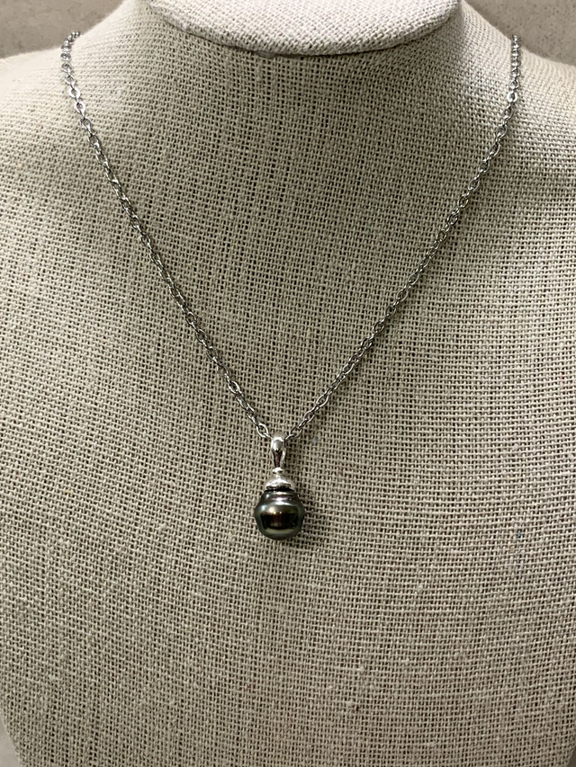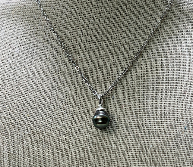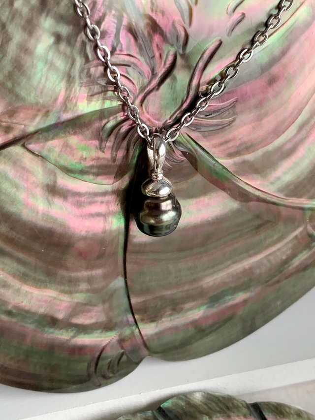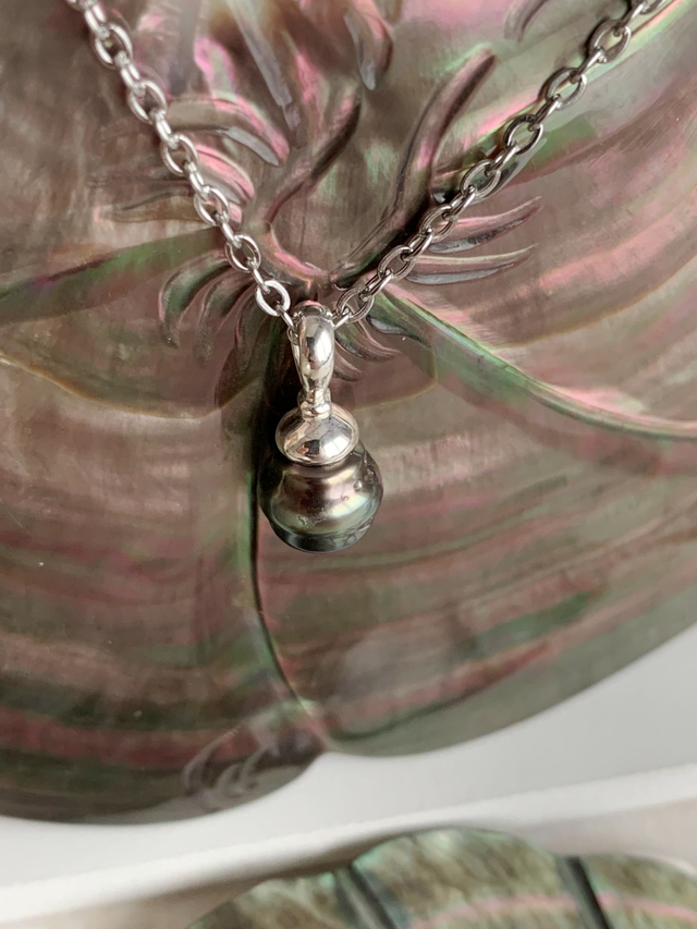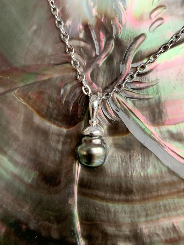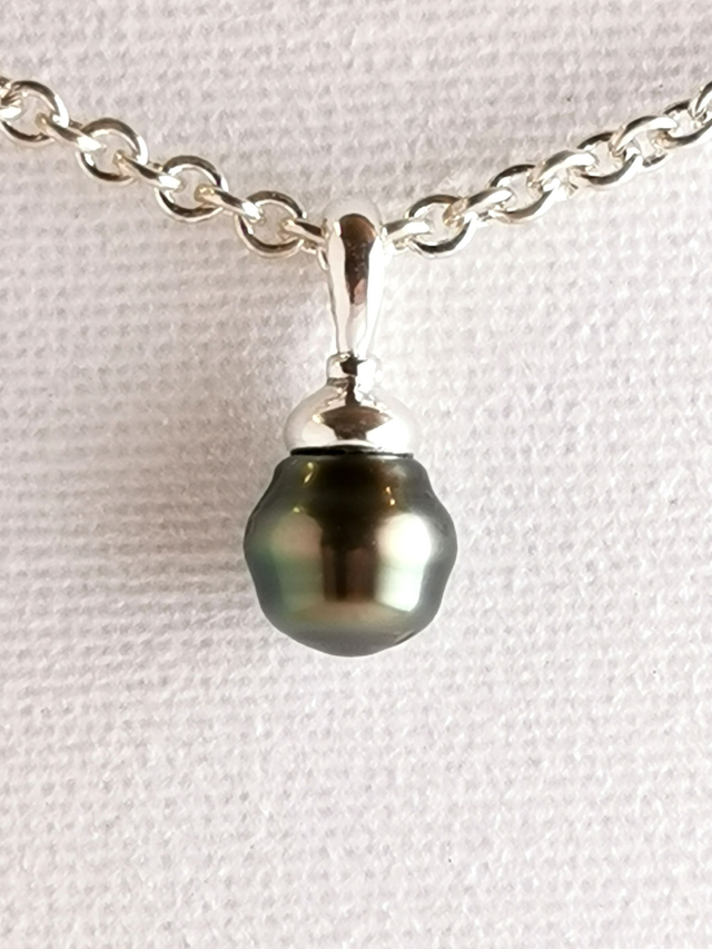 Pendentif en argent 925, surmonté d'une très belle perle de Tahiti.